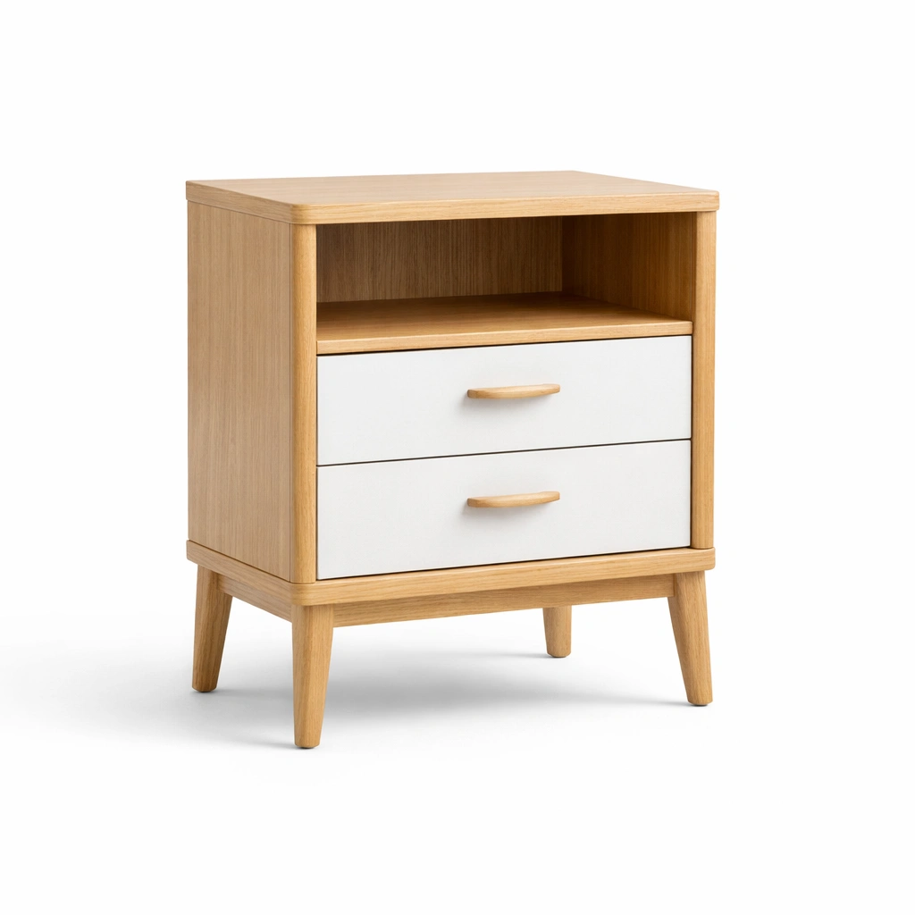 Nachttisch aus eichenfurnier weiß mit schubladen