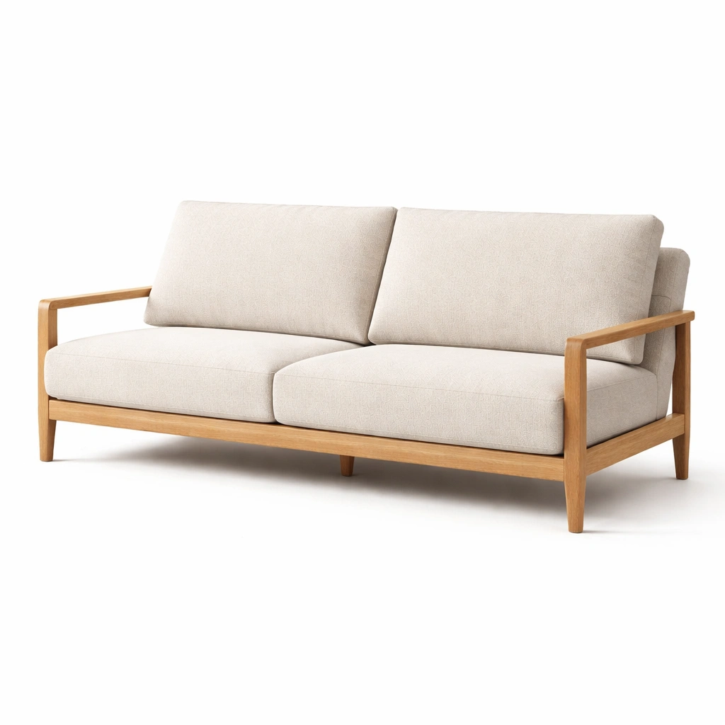 Sofa dreisitzer mit eichenholzrahmen und baumwolle hellgrau